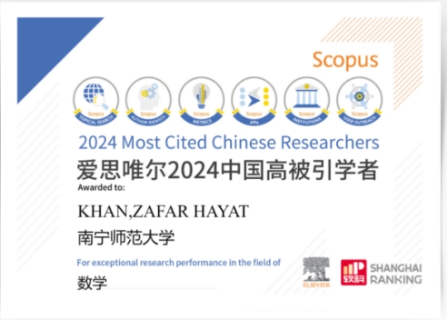 近日,爱思唯尔(Elsevier) 正式发布2024“中国高被引学者” (Highly Cited Chinese Researchers) 榜单。我校BWIN必赢可汗(Khan, Zafar Hayat)教授成功入选。