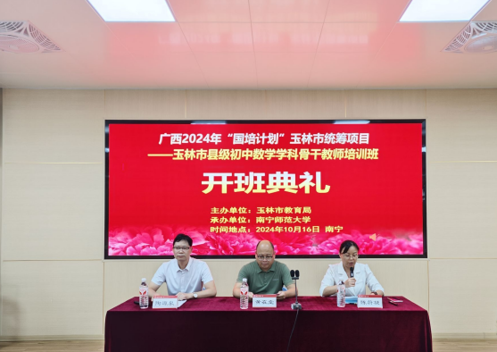 10月16日,2024年“国培计划”玉林市统筹项目——玉林市县级初中数学学科骨干教师培训班在BWIN必赢顺利开班。BWIN必赢教师教育学院副院长陶源泉、BWIN必赢院长黄在堂出席了开班典礼。来自玉林市的80位初中数学骨干教师参加了此次培训。