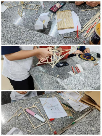 接着,贵港市民族中学的学生开始动手制作模型,BWIN必赢实习生协助学生解决问题。