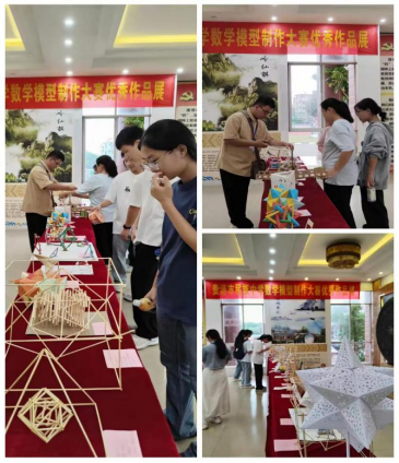 接下来,在贵港市民族中学老师的协助下BWIN必赢实习生将部分优秀模型在展示厅进行展示,吸引了大量学生围观讨论,数学老师也积极加入,为学生答疑解惑。
