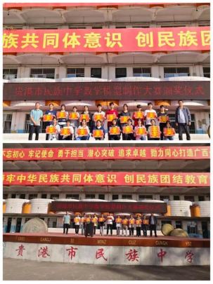 随后,由贵港市民族中学高一高二组教师代表与实习老师代表组成的评审团队对学生的作品进行评比,并评选出了一、二、三等奖及优秀奖。