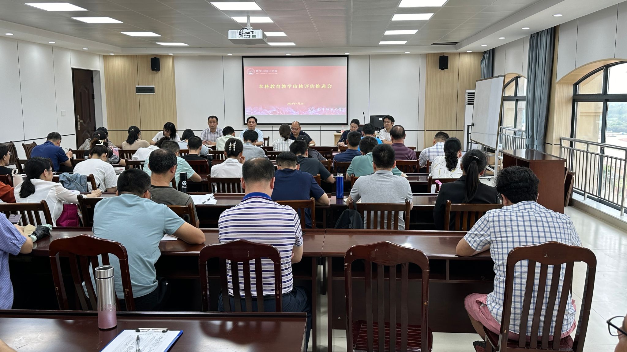 黄在堂院长就本科教育教学审核评估工作重要的时间节点和工作要求作了部署。黄院长指出,全体教职工要高度重视审核评估工作,各教研室要自查和交叉检查相关材料,开展磨课听课活动,熟知审核评估的应知应会,营造本科教育教学审核评估的氛围。