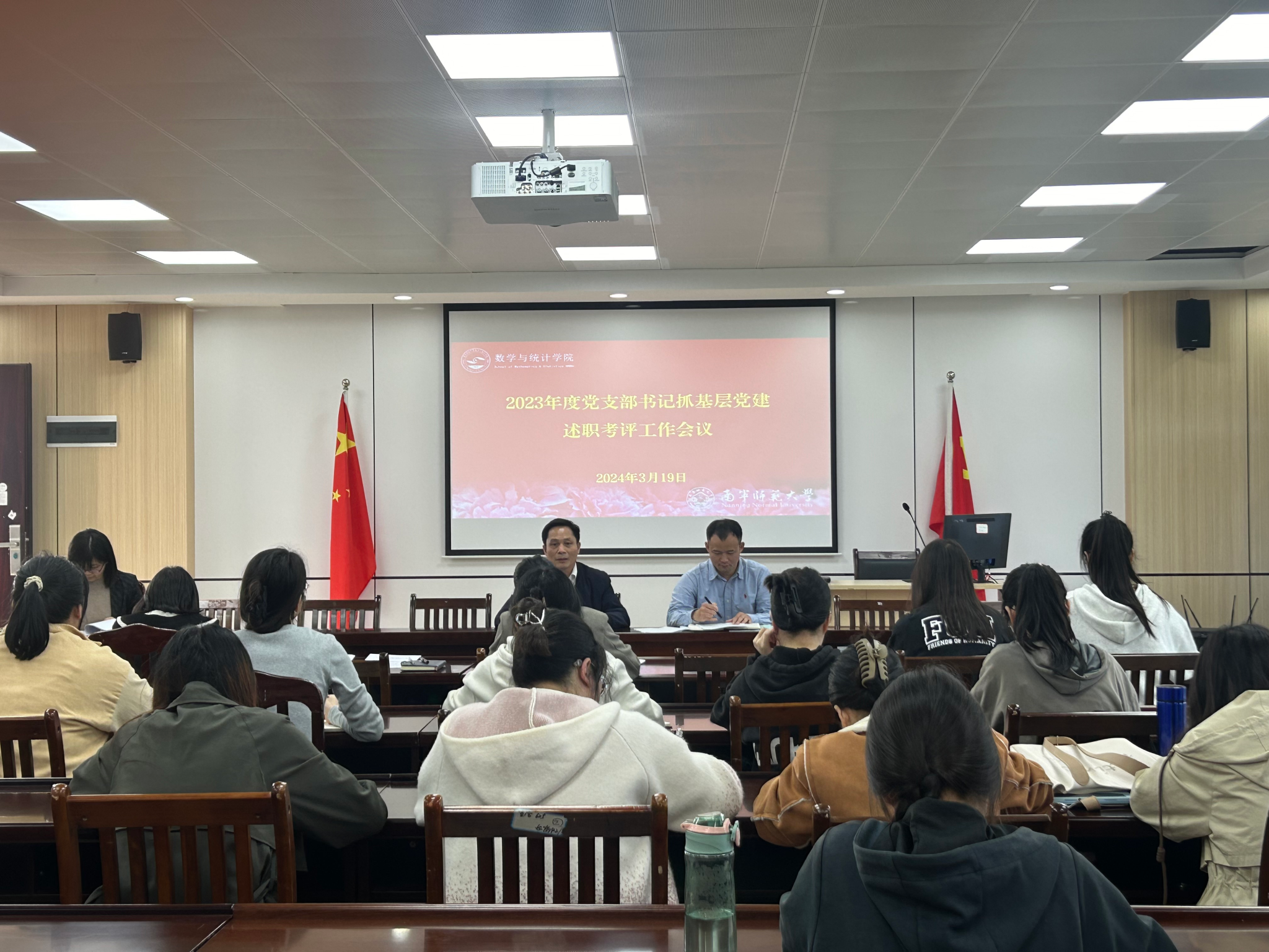 根据《关于做好学校2023年度党支部书记抓基层党建述职评议考核工作的通知》要求,3月19日晚,BWIN必赢在数统楼A601召开2023年度党支部书记抓基层党建述职考评工作会议暨党建工作专题研讨会。BWIN必赢党委委员、师生党支部书记、各党支部书记、支委参加此次会议,BWIN必赢党委书记余敢才参加会议并讲话。会议由BWIN必赢党委副书记付进主持。