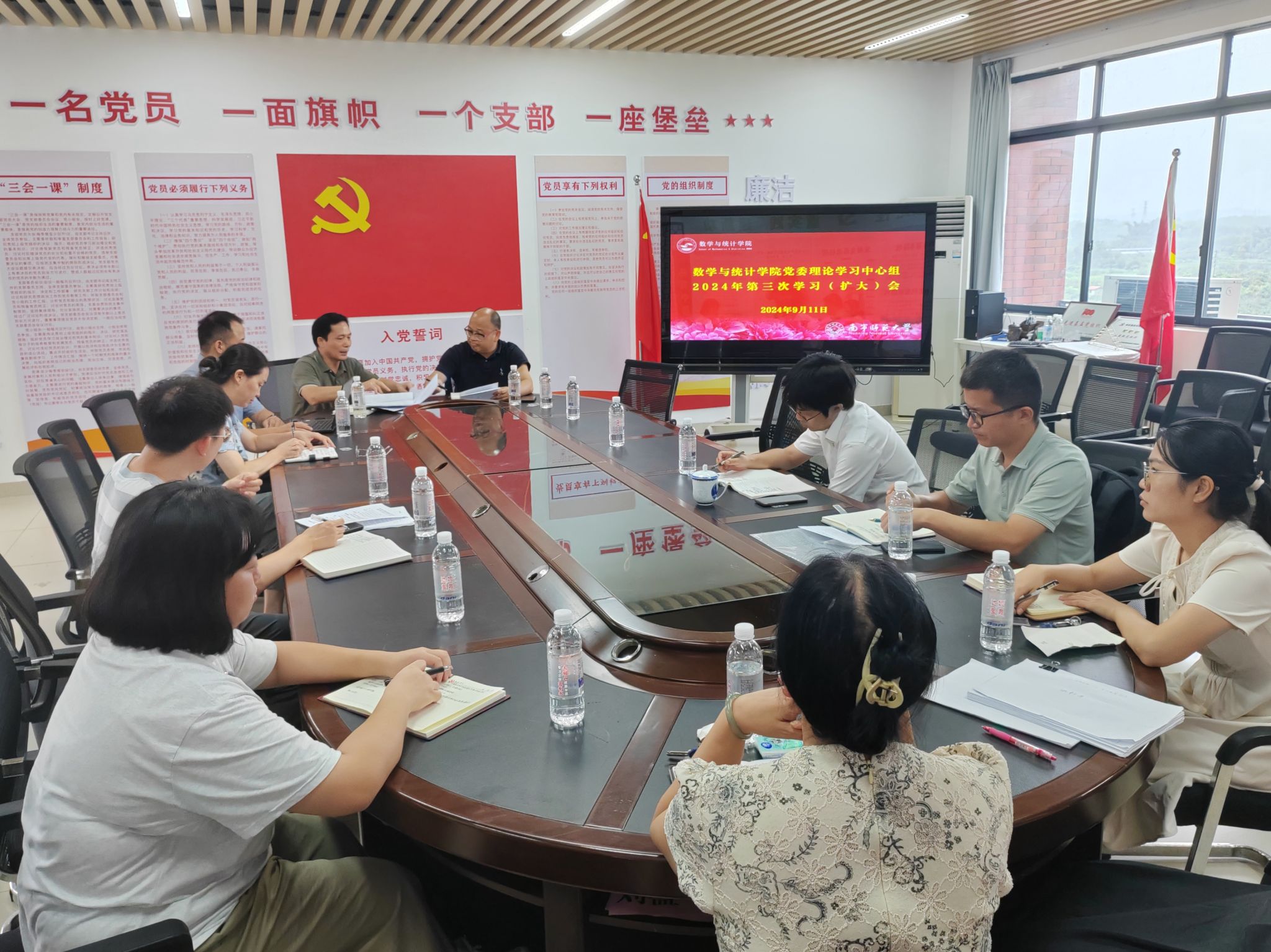 9月11日下午,BWIN必赢党委理论学习中心组在武鸣校区数统楼A501党员活动室召开党委理论学习中心组2024年第三次学习(扩大)会,该院党委理论学习中心组成员、办公室主任、学生支部书记参加会议,会议由该院党委书记余敢才主持。