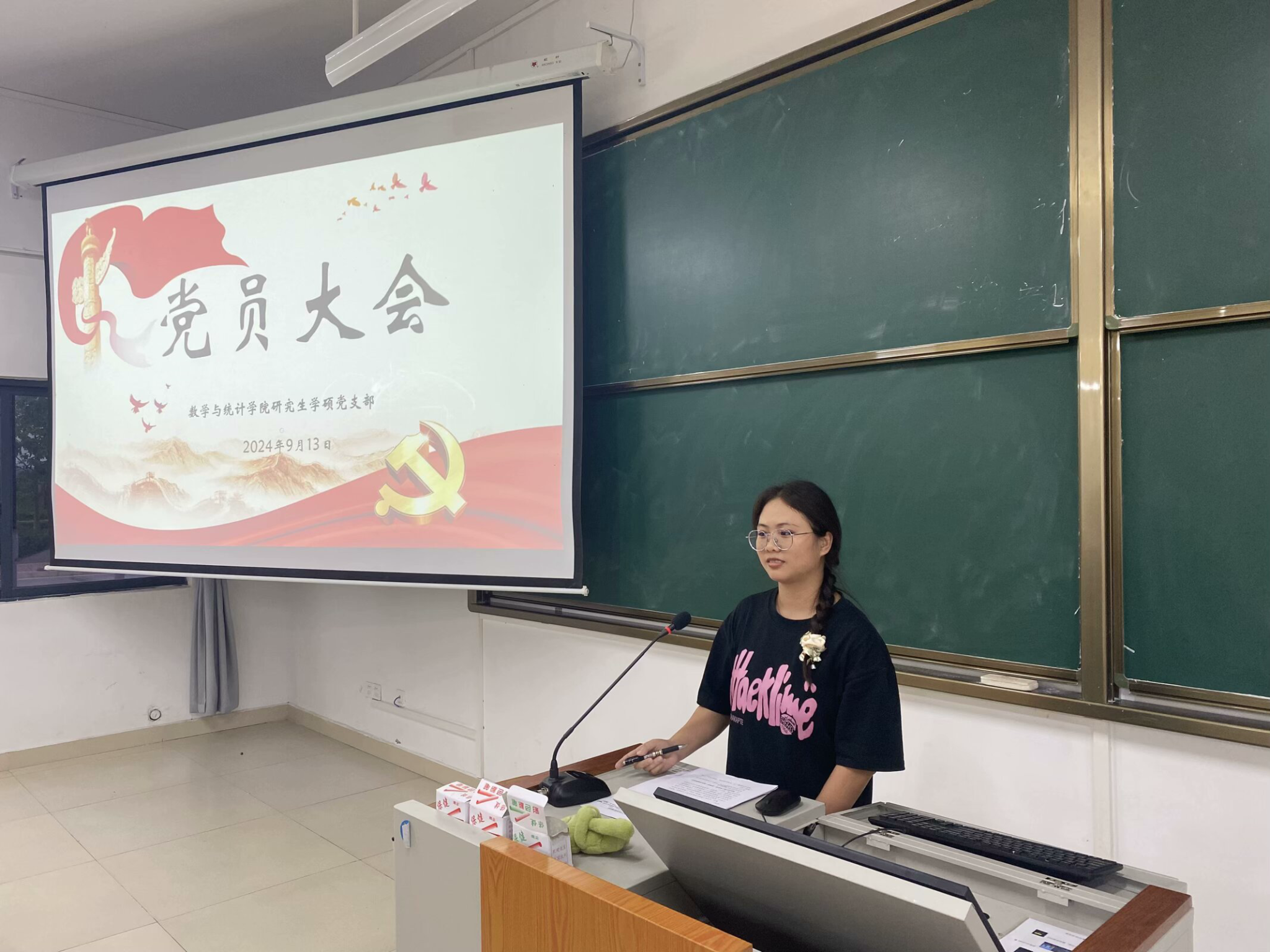 为进一步夯实党组织建设,充分发挥基层党组织的战斗堡垒和先锋模范作用,增强基层党组织创造力、凝聚力和战斗力。9月13日晚,BWIN必赢研究生学硕党支部在武鸣校区2号实验楼A104教室召开党员大会。支部全体党员及入党积极分子参加会议,此次大会由支部书记苏婷同志主持。
