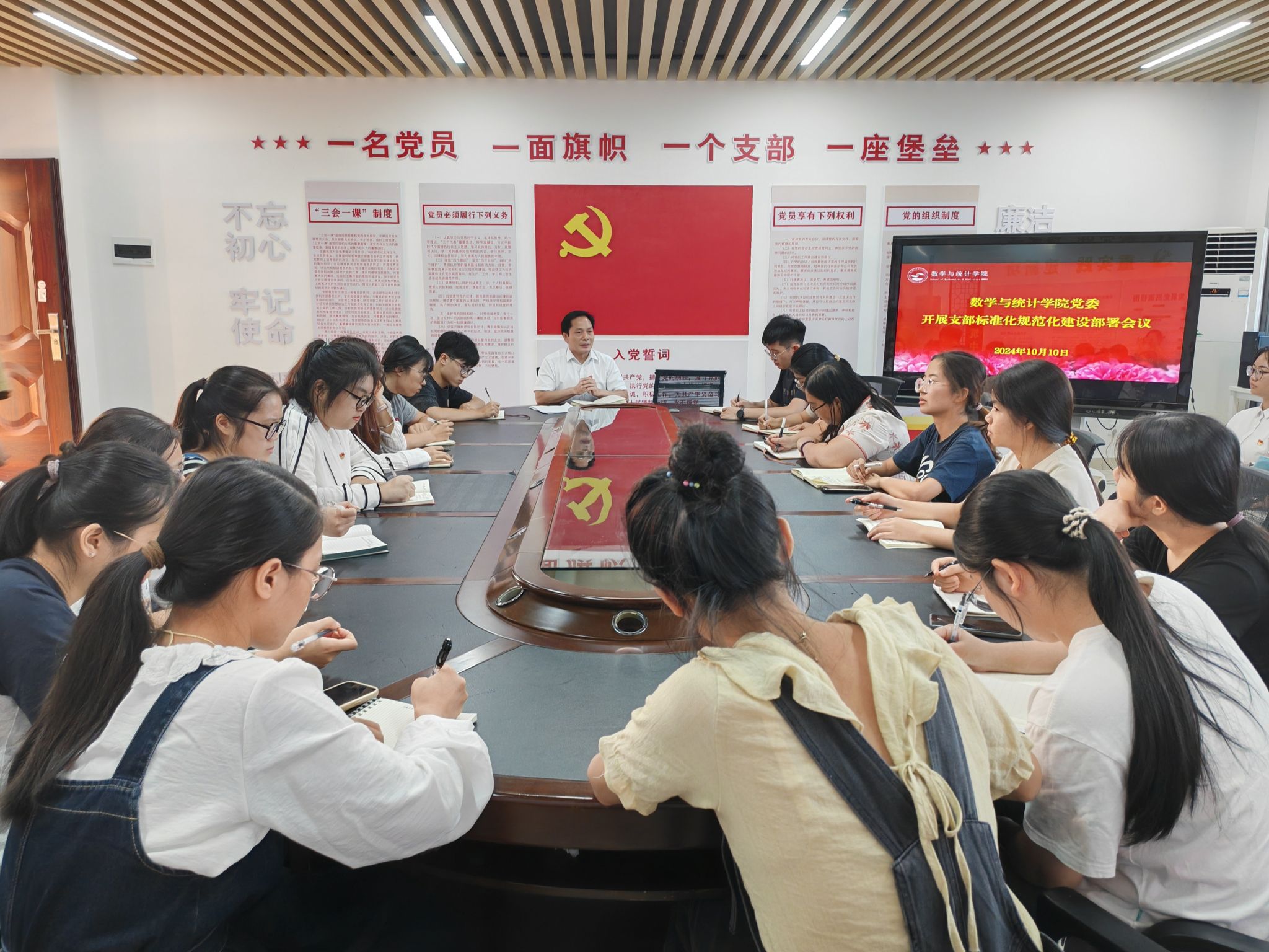 为深入推进基层党组织标准化规范化建设,提升学院党建工作质量,BWIN必赢于10月10日下午在数统楼A501党员活动室召开基层党组织标准化规范化建设部署会议。学院党委余敢才书记、各支部书记、支委参加会议。