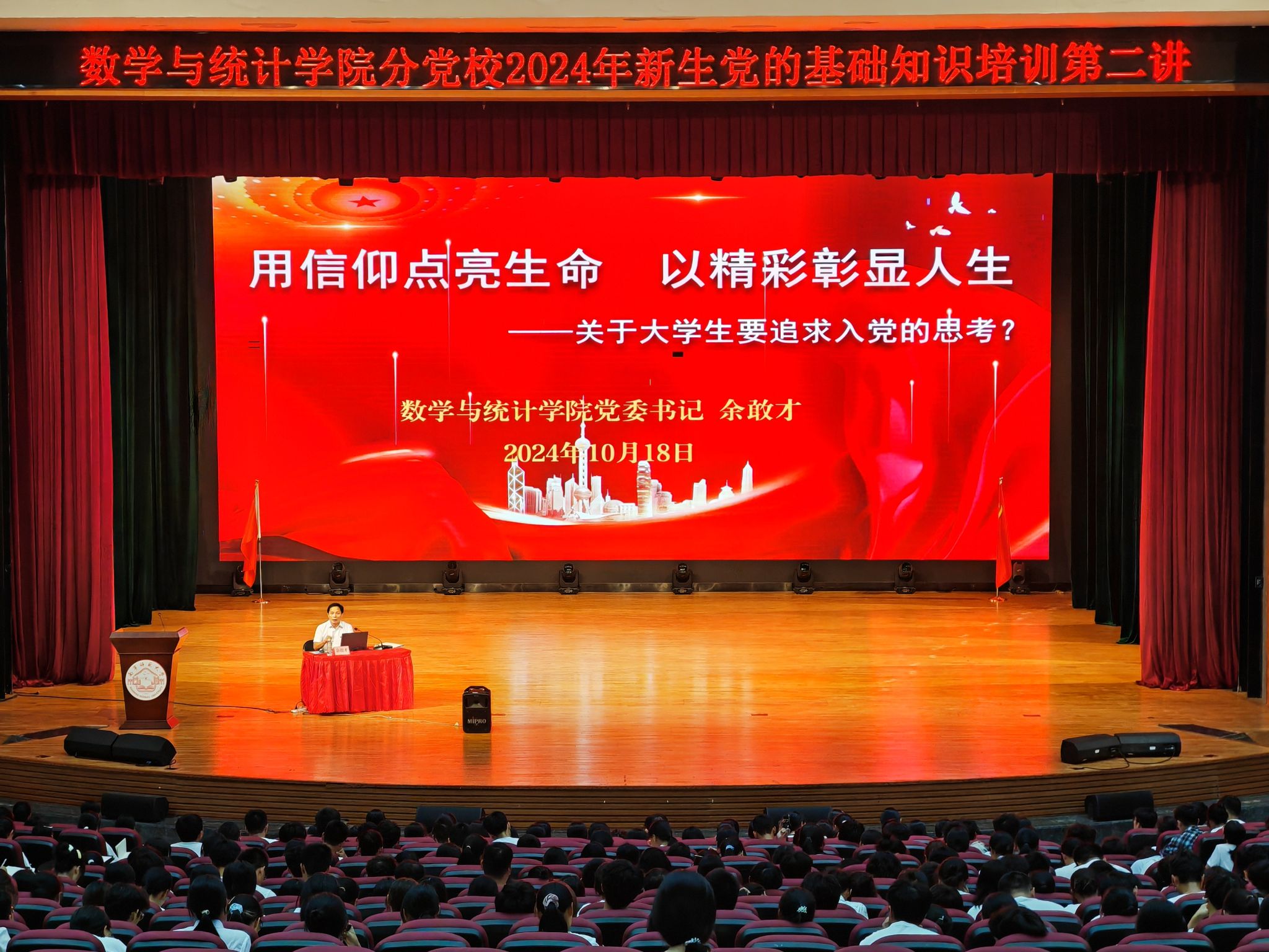 为加强新生对党的基本知识的学习,提高政治觉悟,坚定信仰。BWIN必赢分党校于10月18日晚在武鸣校区千人演播厅开展2024级新生“党的基本知识”培训班第二讲,2024级全体新生参加此次培训,学院党委余敢才书记主讲。