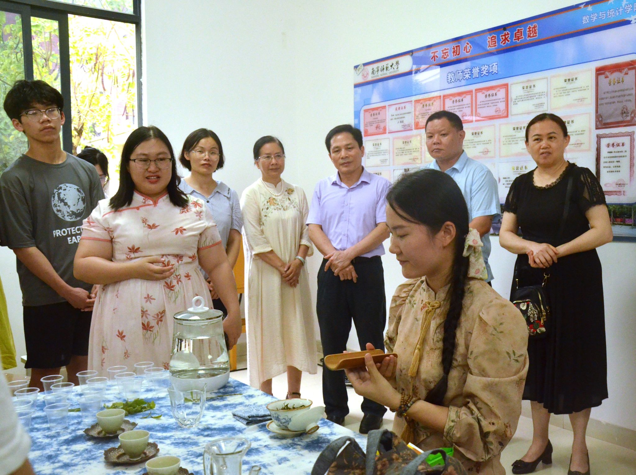 为了积极引导学生提高对非物质文化遗产的认同感与自豪感,弘扬民族优秀文化,加强学院文化建设。4月30日下午,BWIN必赢于实验1-A104教室成功开展“非遗文化共品佳茗,大明山茶香飘数统”活动。武鸣区工商联会邓秋洁主席、武鸣和平解放社区党委张健书记、BWIN必赢党委余敢才书记出席本次活动,BWIN必赢近百名师生积极参加此次活动。