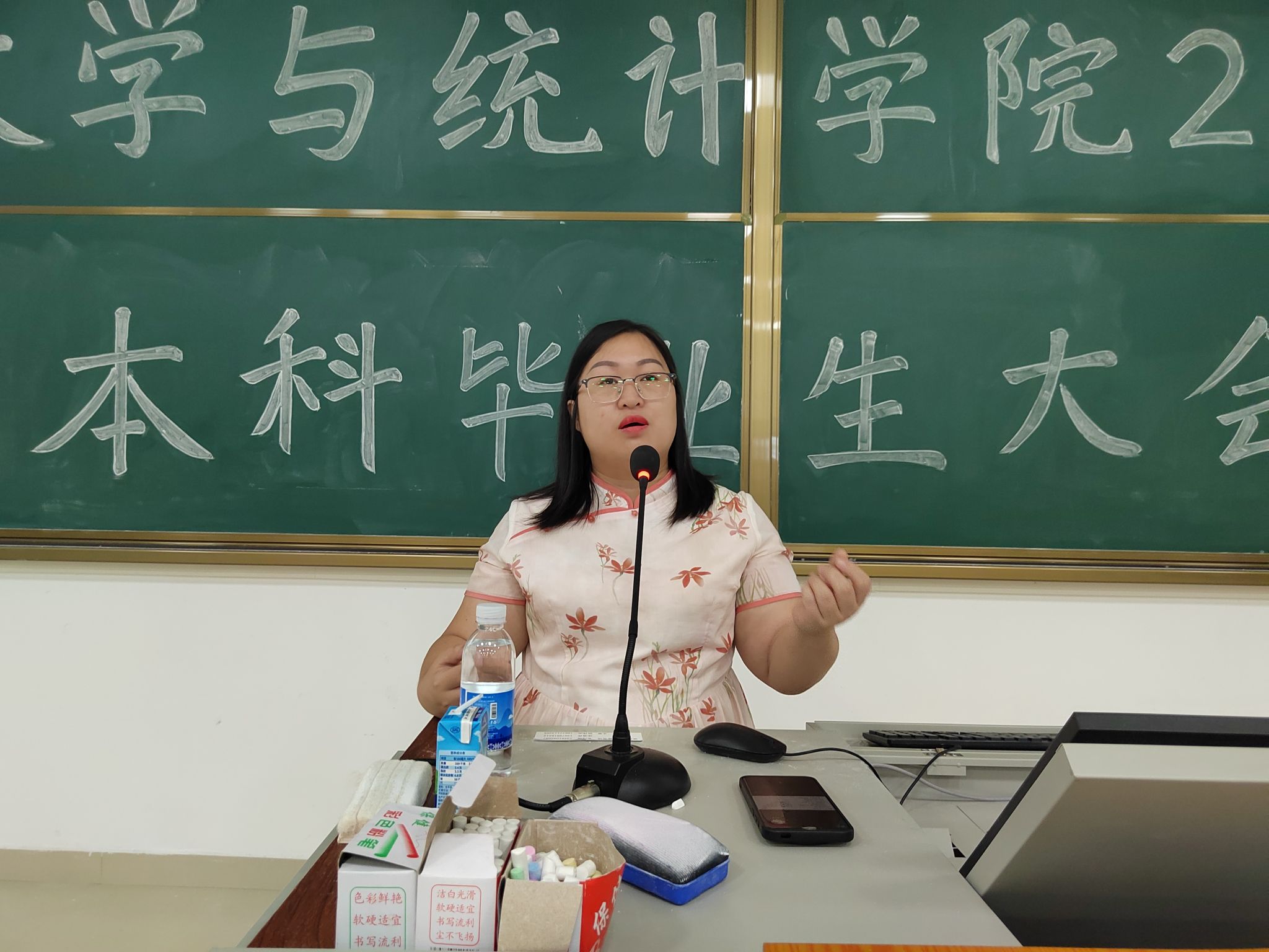 大会伊始,梁老师针对毕业生的安全文明离校、毕业证、学位证、毕业典礼流程、毕业生档案处理、团员学社衔接等注意事项进行了详细讲解,她要求各位毕业生应遵守学校规章制度,认真办理完整的离校手续,确保信息真实准确,做到文明安全离校;她强调了毕业证、学位证和毕业生档案的重要性,希望同学们高度重视;她就毕业照拍摄和毕业典礼工作进行具体安排。最后,梁老师针对目前严峻的就业形势,鼓励毕业生“先就业再择业”,调整好心态,用所学、所得打好职业发展基础。