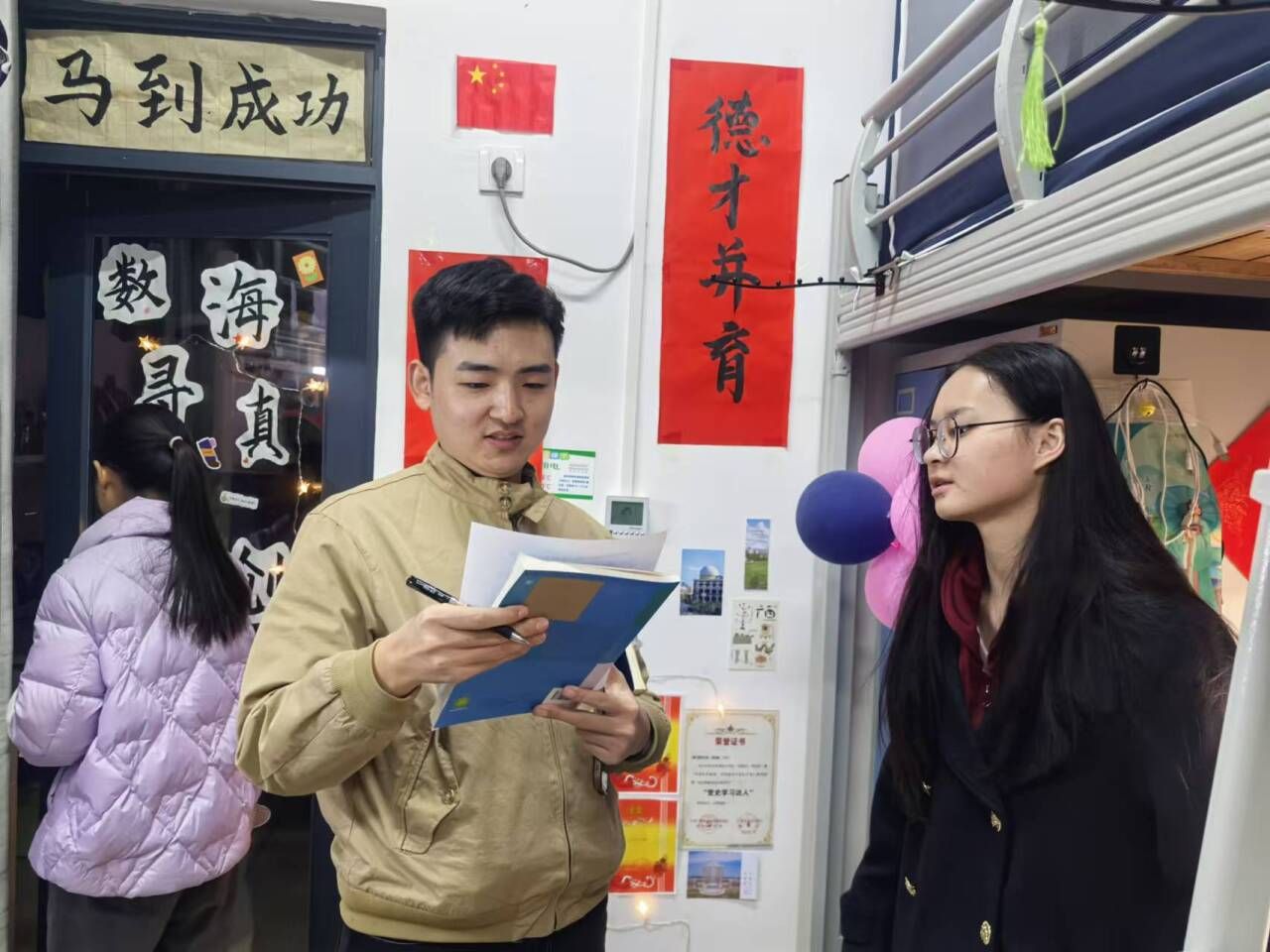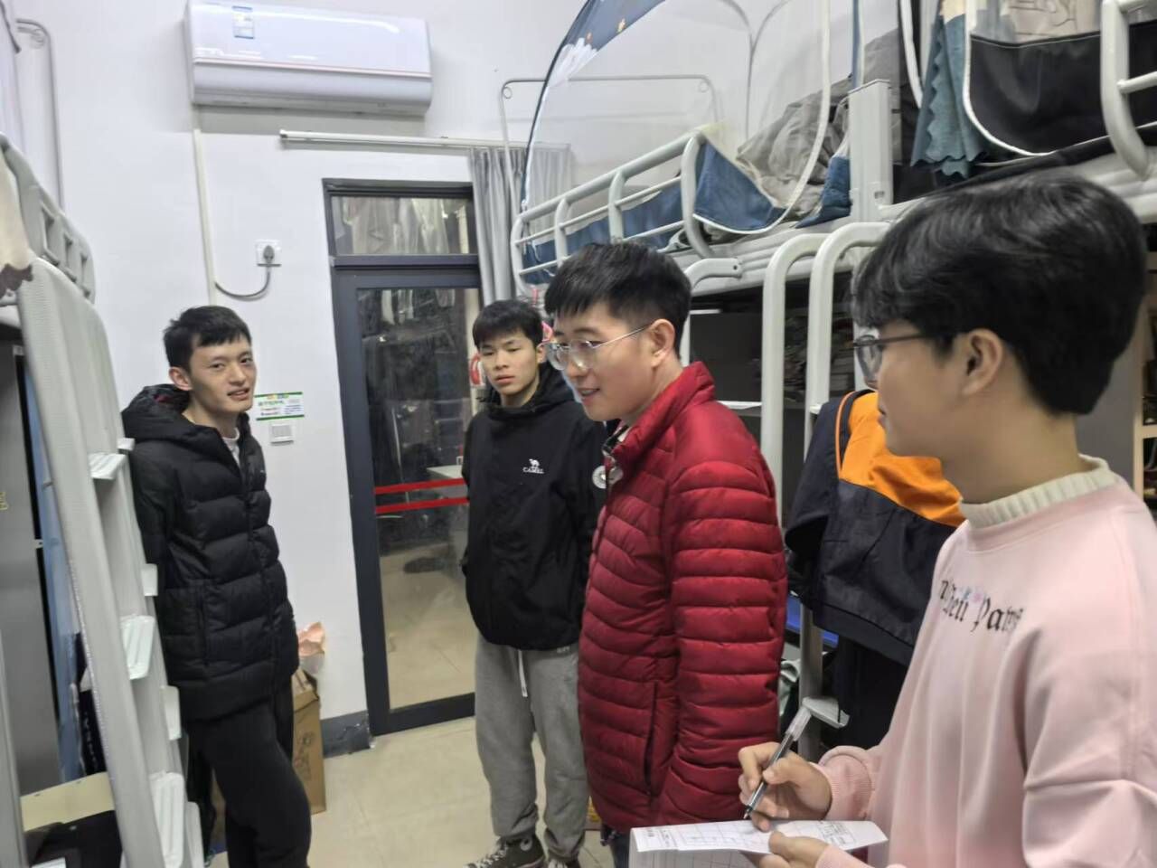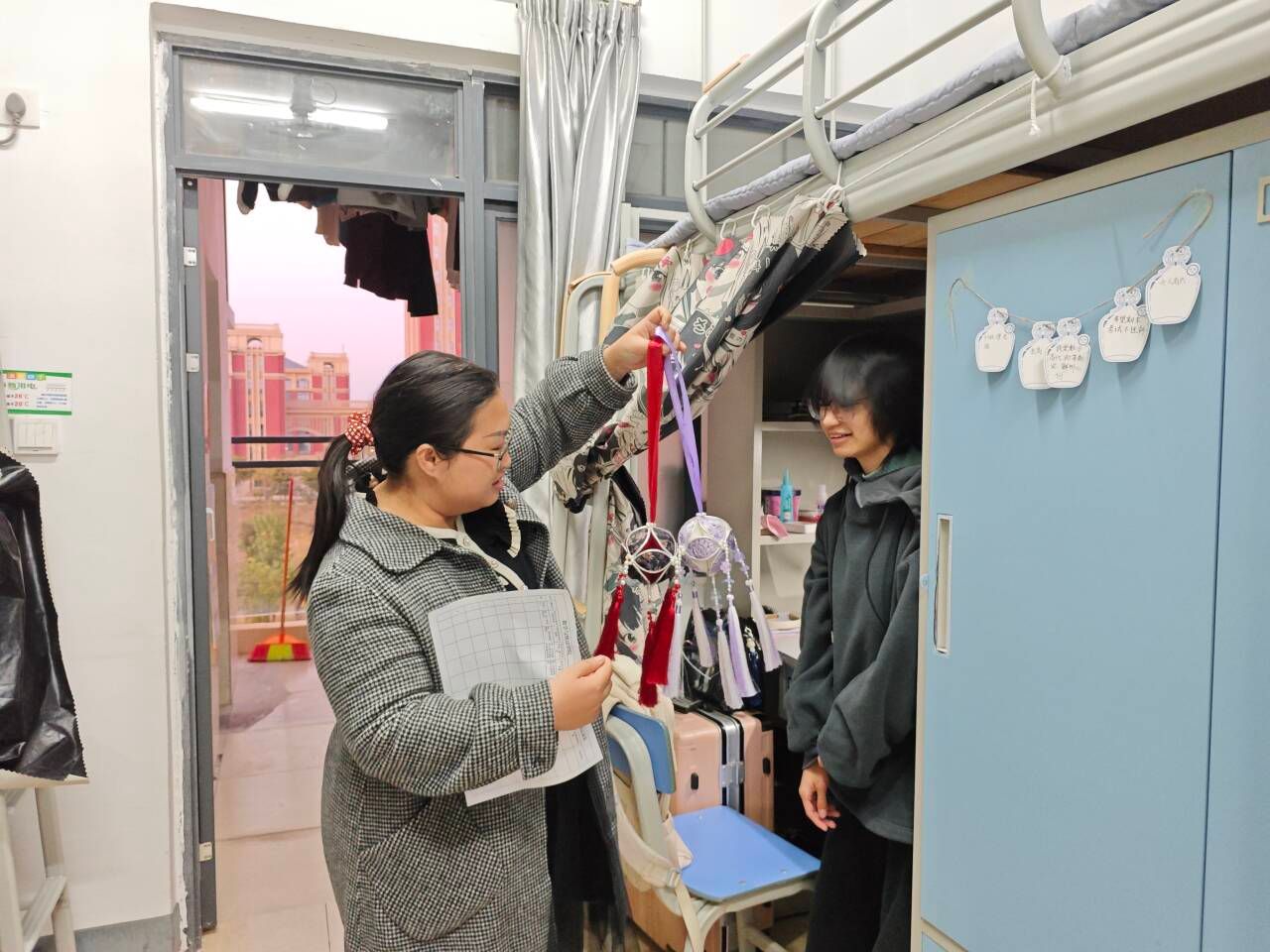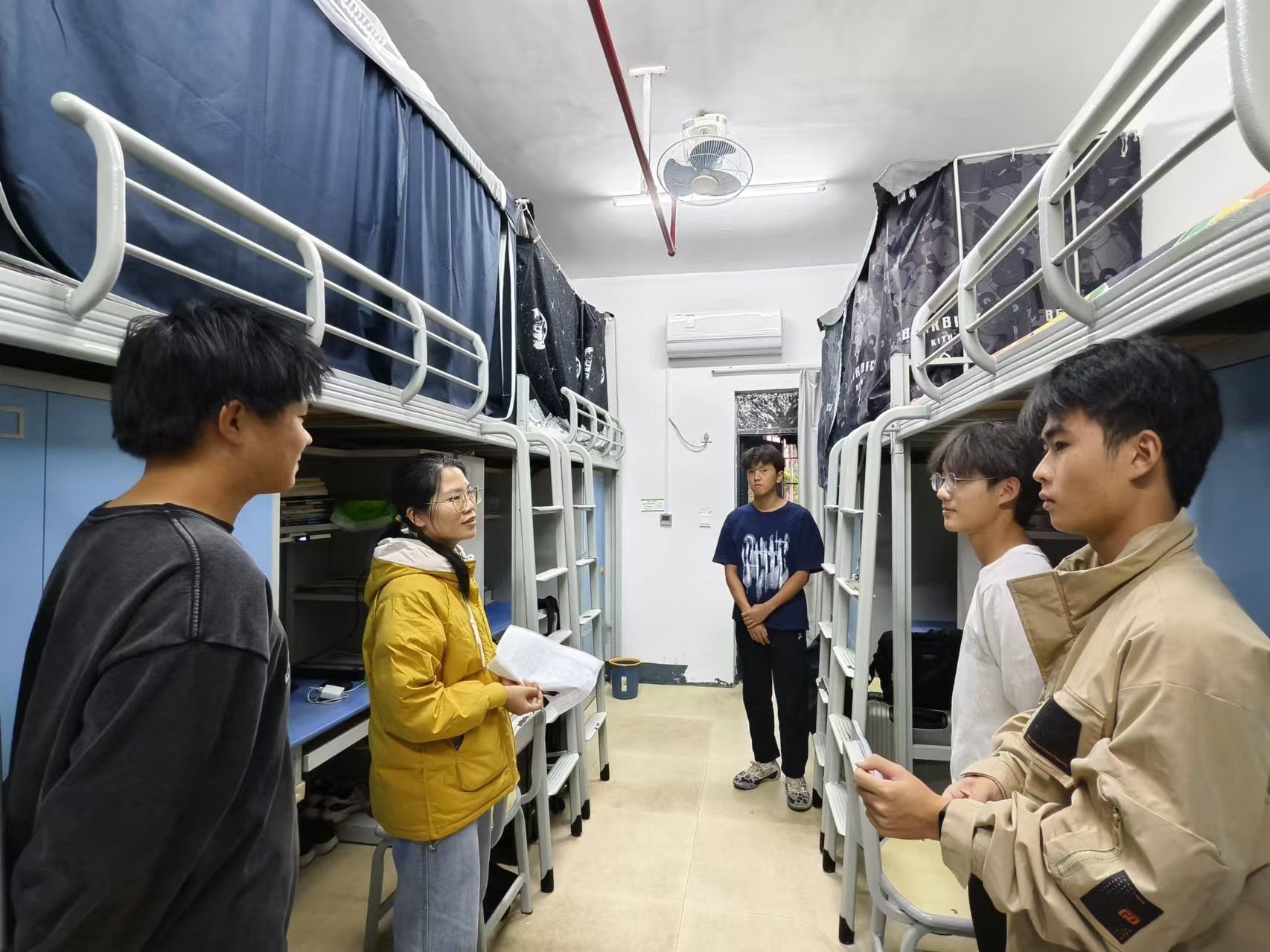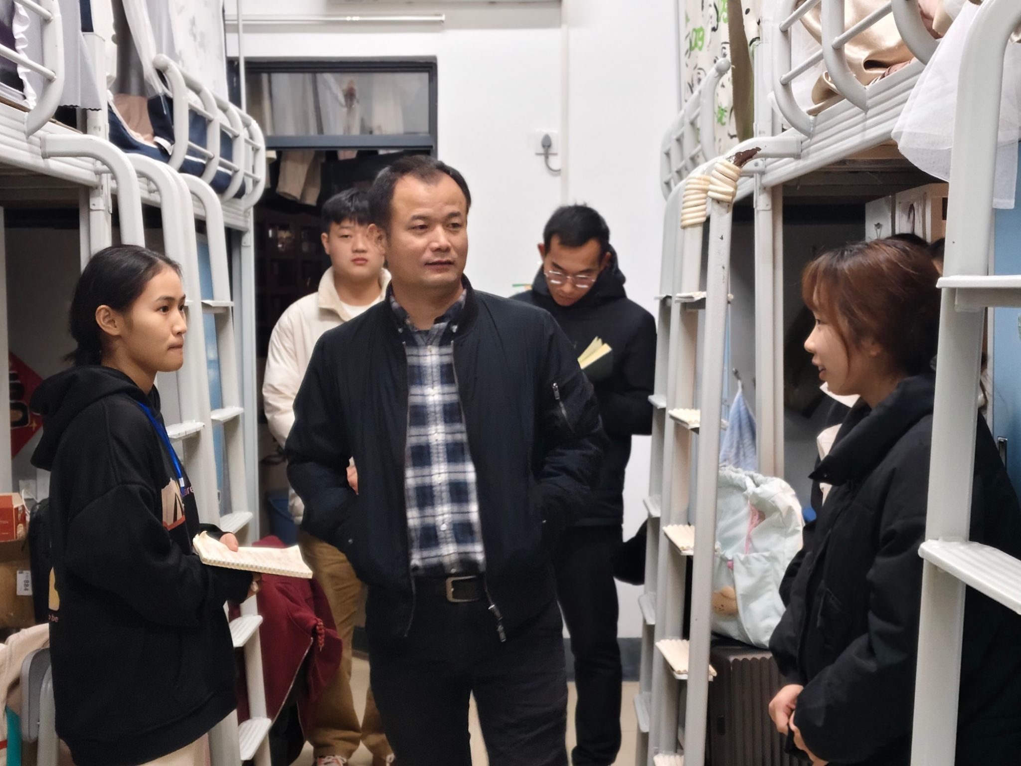 走访过程中,老师们仔细检查了宿舍设施配置、环境卫生和学习生活条件,对发现的问题当场记录。在与学生的交流的过程中,特别强调了宿舍安全问题,明确要求同学们严禁使用违规电器,并提醒了同学们注意用电防火安全。同时,老师们希望同学们提高反诈防骗意识,确保个人财产安全。此外,老师们鼓励同学们积极参与宿舍文化建设,共同营造一个安全和谐的居住环境。临近学期末,老师们也指出同学们应该扎实进行期末复习,诚心备考,诚信应考。