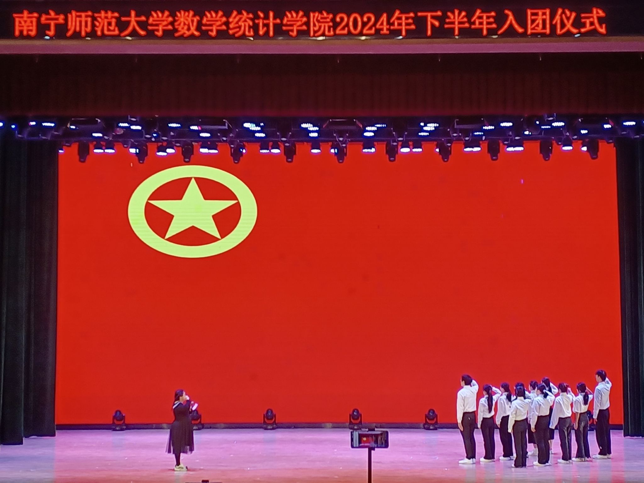 特团活动在大合唱《唱响青年之声》的歌声中展开,旗手们挥舞着红色的旗帜,点燃了现场气氛。伴随着雄壮激昂的国歌响起,庄严的入团仪式正式拉开帷幕。在宣读新发展团员名单后,团委书记梁卡霖老师带领全体团员举起右拳,庄严宣誓。紧接着,新发展团员代表李思源向同学们讲述了入团仪式的重要意义,同时表明自己今后将在学习生活中更加刻苦努力、争取成为优秀团员的决心;优秀团员代表唐丽娟同学的发言结合自身经历,鼓励同学们在大学期间,多方位锻炼自身能力,全面发展。团委书记梁卡霖老师向新发展团员表示祝贺,从三个方面对同学们提出希望与要求:一是希望同学们遵守纪律、言行一致,牢记团组织的嘱托,严格遵守团的规章制度;二是希望同学们去服务社会,回馈社会,积极参与志愿服务活动和公益活动;三是希望同学们树立远大理想,努力学习,积极进取,争取成为一名优秀的共青团员。