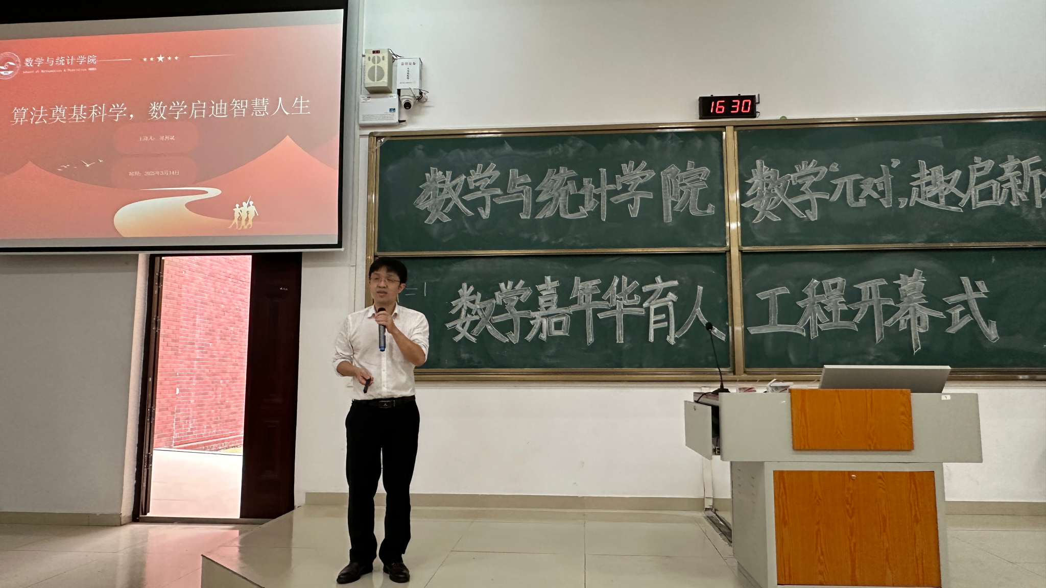 3月14日是国际数学日,BWIN必赢在实验二-A105教室举办了以“数学‘π对’,趣启新程”为主题的数学嘉年华数学文化节开幕式,学院党委付进副书记、副院长刘利斌教授、辅导员老师们以及学生代表们参加本次开幕式。