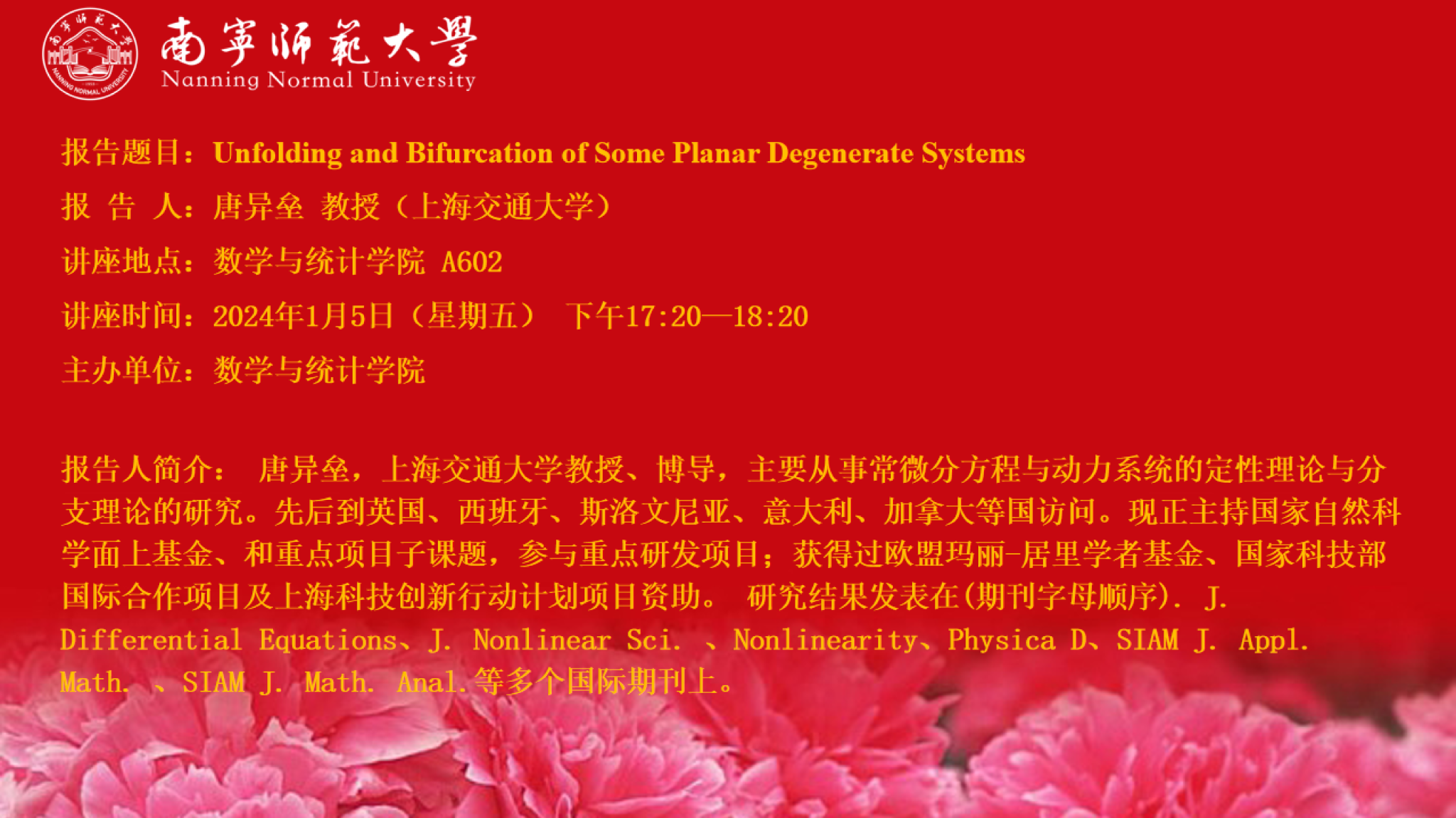 BWIN必赢邀请上海交通大学唐异垒教授作报告