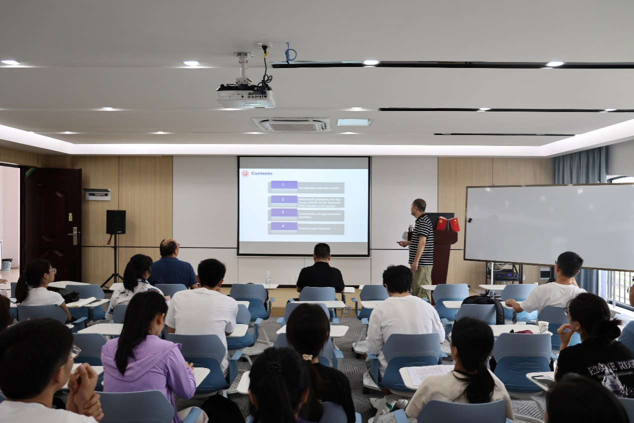 储继峰教授在报告中给在场师生介绍了线性微分算子特征值方面的最新研究成果,并强调狄氏特征值精确上下界的重要性。同时,储教授还提及了偏微分方程节点集方向的相关动态及研究成果。储教授的报告极大的丰富了在场师生对偏微分方程理论及其应用的相关知识。