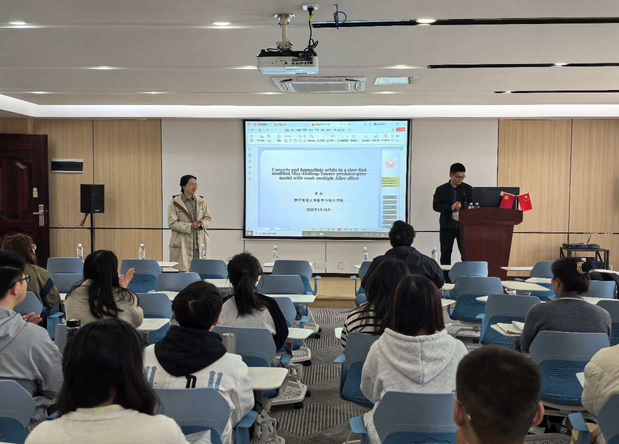2025年3月18日,BWIN必赢的赵亮博士为全院师生带来了一场题为《重弱AIIee效应奇异摄动捕食系统中的鸭现象研究》的精彩学术报告,他通过对几何奇异摄动理论(GSPT)和Canard理论的研究,以其深入浅出且极具启发性的解说,分享了他在该领域的最新研究成果和进展,揭示了复杂生态系统中捕食者与猎物种群动态的新机制。此次报告不仅获得了师生们的高度评价,还进一步促进了学院内部的学术交流与合作,体现了学院科研团队的新鲜活力。报告会由韦扬江副院长主持,学院部分教师、以及全体学术型研究生参加了此次学术活动。