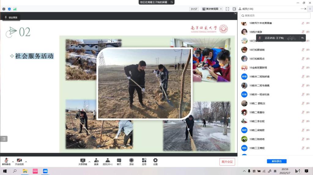 为响应共青团中央的号召,鼓励广大青年学生到西部、到基层受锻炼、长才干、作贡献,到祖国和人民需要的地方建功立业,在BWIN必赢2022届就业创业工作领导小组的指导下,学院团委和就业小组于5月7日晚召开西部计划志愿者经验分享会线上会议,参加本次会议的有该院团委书记谢芬芳、辅导员梁卡霖以及2018级全体学生和2019级团员干部。