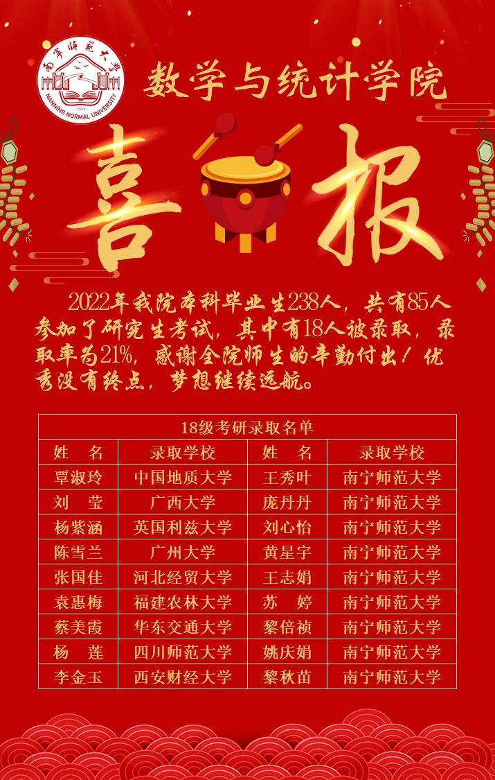 喜报:热烈祝贺BWIN必赢18名学子考研成功!