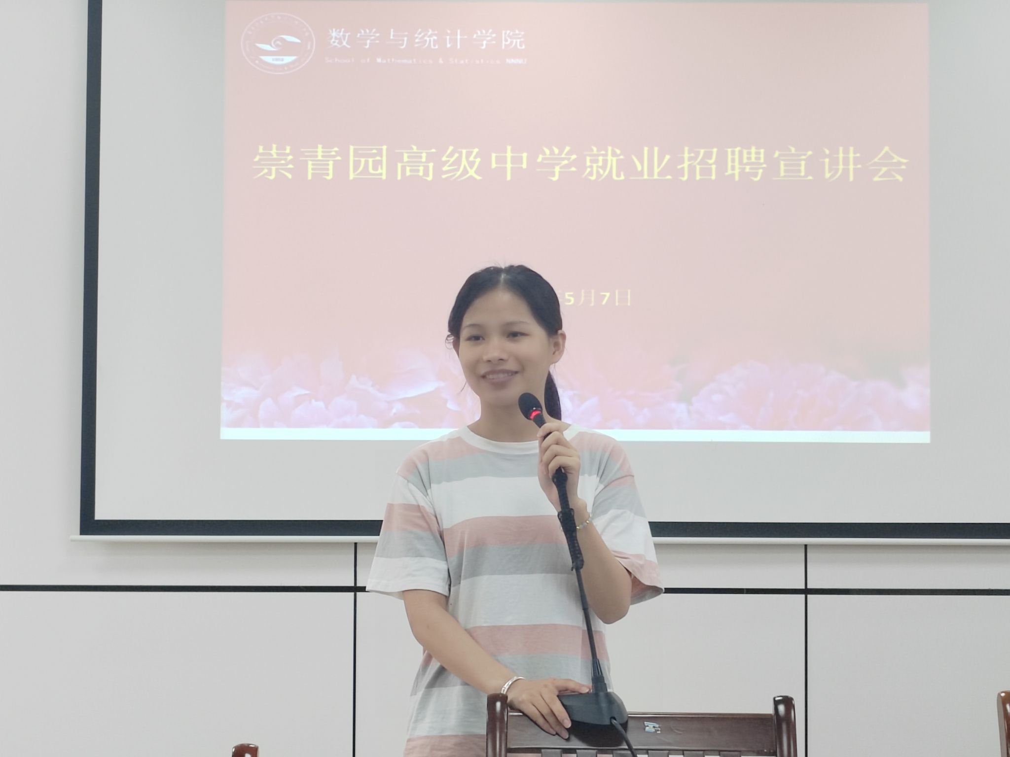 崇青园高级中学教学副校长许翘一行人到BWIN必赢参观后到达招聘现场展开招聘。本次招聘分为学校宣讲和专项招聘两个环节。宣讲中,许副校长介绍了崇青园高级中学的教育理念、工作环境、薪资待遇、教师成长发展等基本情况;紧接着在此单位已入职的该院2019级毕业生覃新栩就毕业后在该高中的教学、班级管理、报酬以及所感所想等进行分享,生动讲述了自己从刚入岗时的青涩到成长为一名优秀班主任的蜕变过程。负责人事工作的老师也就本次招聘进行讲解。随后,该院辅导员梁老师总结发言,她先是列举往届到该单位工作的毕业生情况,再强调了就业工作必须抓住时机、积极就业,并鼓励在场学生现场投递简历、做出就业行动。宣传会结束后,该单位开启了现场招聘面试环节。最后,该院共有1名研究生、6名本科毕业生本场招聘会中获得就业机会。