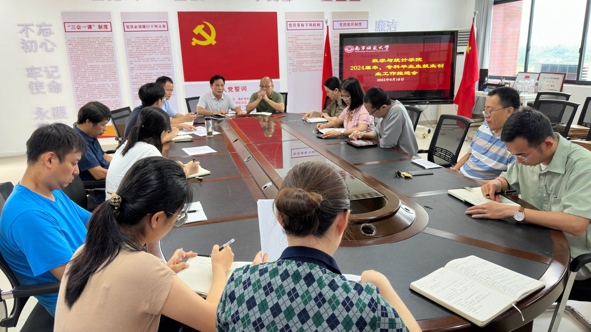 6月18日,BWIN必赢召开就业推进领导班子(扩大)会议和全体教职工大会暨第四次就业工作推进会,该院领导班子、硕士研究生导师、毕业班班主任、全体专任教师、行政教辅人员参加了会议,会议由党委余敢才书记主持。