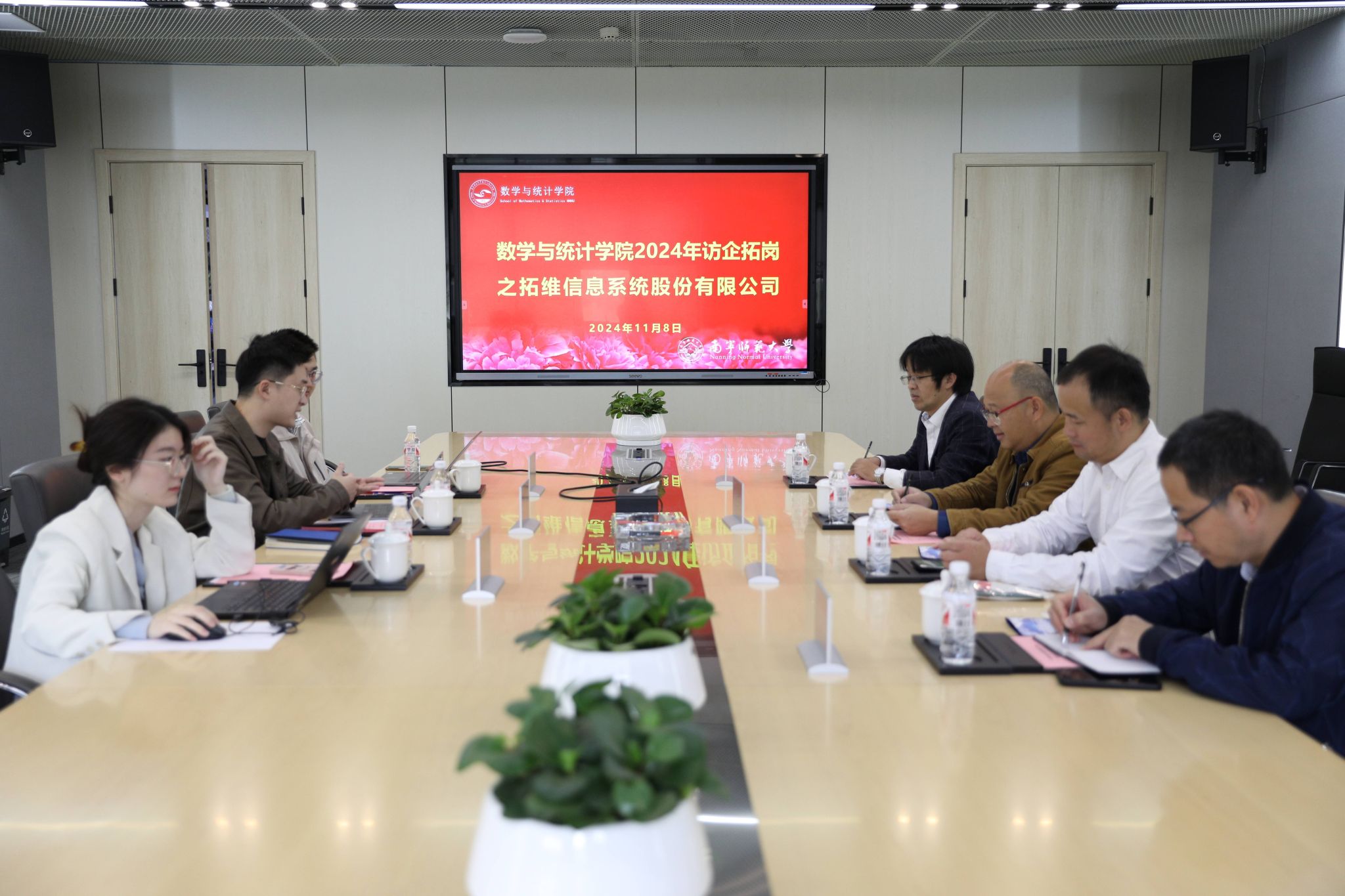 11月8日,黄院长一行人先来到拓维信息股份有限公司,在该公司战略招聘总监侯晋鹏的带领下参观了该公司湖南总部的布局和发展历程。在座谈环节中,黄在堂院长介绍了BWIN必赢和BWIN必赢的情况,重点介绍了学院的毕业生资源和专业优势,并联系拓维信息股份有限公司当前的产业发展,邀请该公司到学校开展专场招聘,表达建立校企合作的愿景。拓维公司的产业和人才培养总监邓娟回应了招聘的需求,详细介绍了2025年校园招聘的岗位情况和计划,且进一步了解了BWIN必赢的人才培养计划和毕业生就业创业领域等情况。座谈中,双方还就“AI算法”、新质生产力如何融入大学生人才培养等问题进行热烈的讨论和交流。